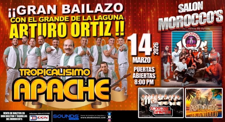 En este gran concierto el artista estelar será Tropicalísimo Apache, pero previo a su presentación estará el talento juarense de La Internacional Sonora Skandalo, La Inigualable Sonora Dinamita e Iniciadores CH de B, esta última agrupación conformada por miembros iniciales y originales de Chicos de Barrio, liderados por Yiyo Nájera.