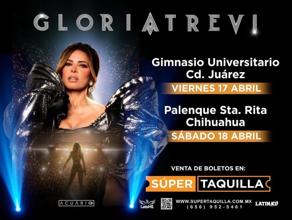 Este viernes 17 de abril el Gimnasio Universitario de la UACJ recibirá a la Reina del Pop en español; Gloria Trevi quien se presentará para deleite de todos sus seguidores y seguidoras.